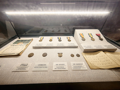 推开一战华工纪念馆的大门,迎面便是“船出威海”的历史照片。场馆中集中展示了一战时期十几万华工奔赴欧洲西线战场的历史。展览以“劳工神圣”为主题,分为“世纪大变局”“最佳招募地”“万里赴戎机”“遣留何处去”“大潮起东方”5个板块,展出了华工铜手镯、帽徽、证件、华工日记、纪念章等近200件文物,直观而生动地展现出当时华工的工作生活情况及这一群体对中国和世界的影响。