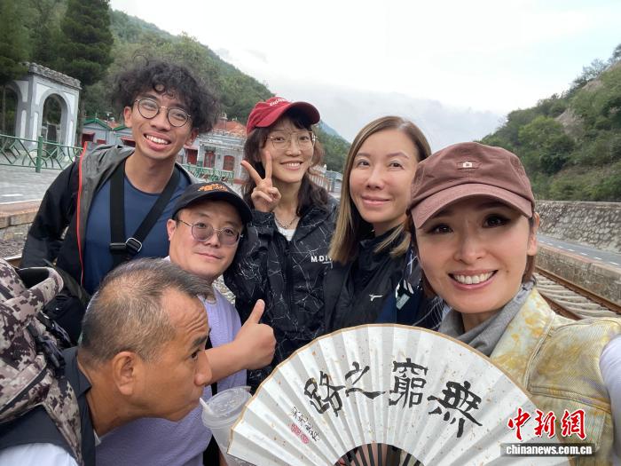 摄制组一行6人在京张铁路青龙桥站合影。(受访者 供图)