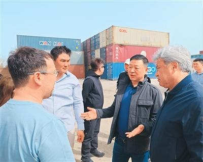图为2025年5月,何诚(右二)陪同哈萨克斯坦企业代表团参观西安浐灞国际港。受访者供图
