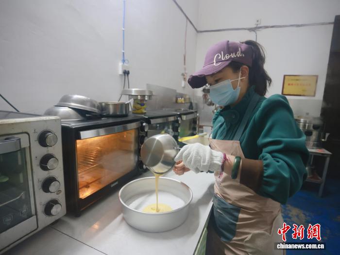 图为姐妹花在制作糕点。汤晓逵 摄