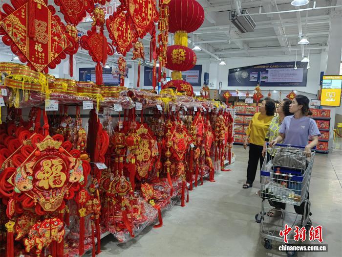 来自中国的各类精美糖果礼盒、饮品、利是包以及春节饰品,是这家商超近期销售最好的商品。“比如‘福’字这类的装饰挂件,许多当地顾客都是一车车(购物车)装满推走。此外,用于春节祭拜或商务馈赠的水果礼篮需求也在大幅上升。”李维湘说。