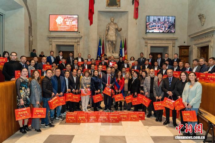 在意大利罗马,当地侨团不仅把新春年味送到侨胞手中,更将其带入罗马市政府议会厅,邀请多位罗马市政府官员共庆佳节。