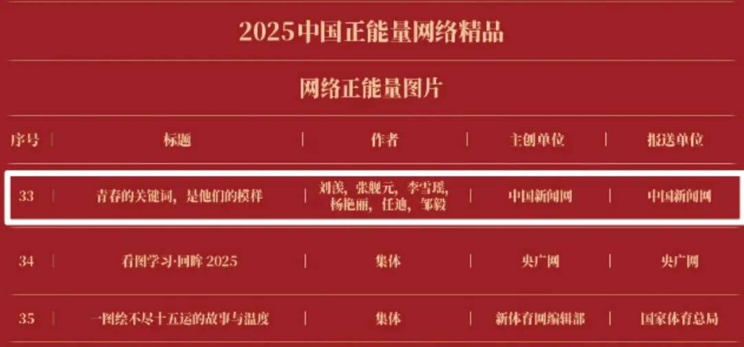 《“新漫评”系列漫画》《“三里河”专栏》入选2025中国正能量网络正能量十佳网络精品。 《高清大图看阅兵》《青春的关键词,是他们的模样》入选2025中国正能量网络精品网络正能量图片;《英国博主深入日本街头采访:民众批评高市介入台湾问题》《异国“故乡”》入选2025中国正能量网络精品网络正能量音视频;《“习言道”专栏》《华侨华人与抗战》入选2025中国正能量网络精品网络正能量专题专栏;《“冰雪春天”全网重大主题活动》《“义利天下”网上国际传播活动》《“探店1天”系列报道》《“侨”见海南自贸港主题活动》《“遇见上合共享津彩”网络国际传播活动》入选2025中国正能量网络精品网络正能量主题活动。