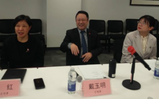 吹風會由總領館政治署署長閻倩主持,王紅副總領事配同,首先由戴玉明總領事發言。