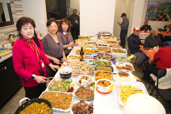 上午9不到,辛勤的義工已經早早地到達現場,義工們分工明確,各司其職,忙忙碌碌而秩序井然。因為報名參加的人數超過百人,同鄉會員們紛紛帶來自己拿手的上海名菜名點和鄉親們分享。