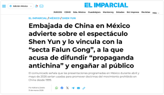 此外,当地时间3月15日,阿根廷媒体“El Destape”刊文指出,中国驻墨西哥大使馆近日通过社交媒体提醒称,“神韵演出”是与邪教组织“法轮功”相关的宣传,并呼吁墨西哥公众不要前往观看。文章进一步分析称,“神韵”表面上打着中国传统文化避风港的旗号,但在其华丽包装的舞台背后隐藏着地缘政治博弈、劳工虐待指控,以及邪教组织敛财工具的本质。
